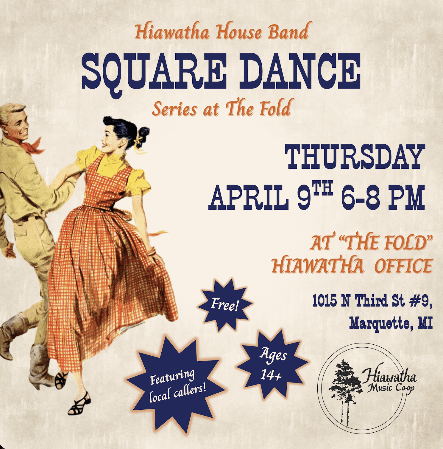 April 9th from 6-8 pm at The Fold! Join Hiawatha House Band for an evening of dancing and music. This is a free event and is for ages 14+. Don’t forget your comfortable dancing shoes!